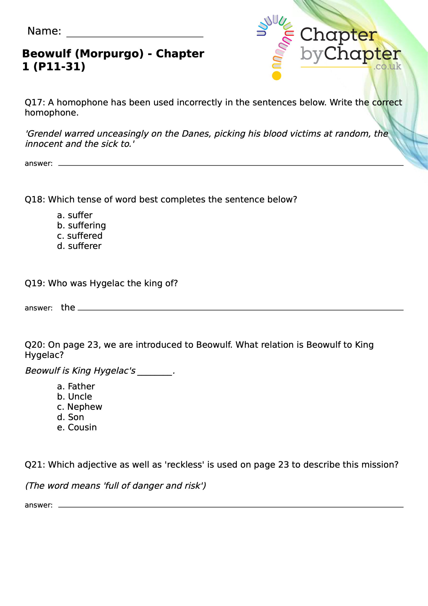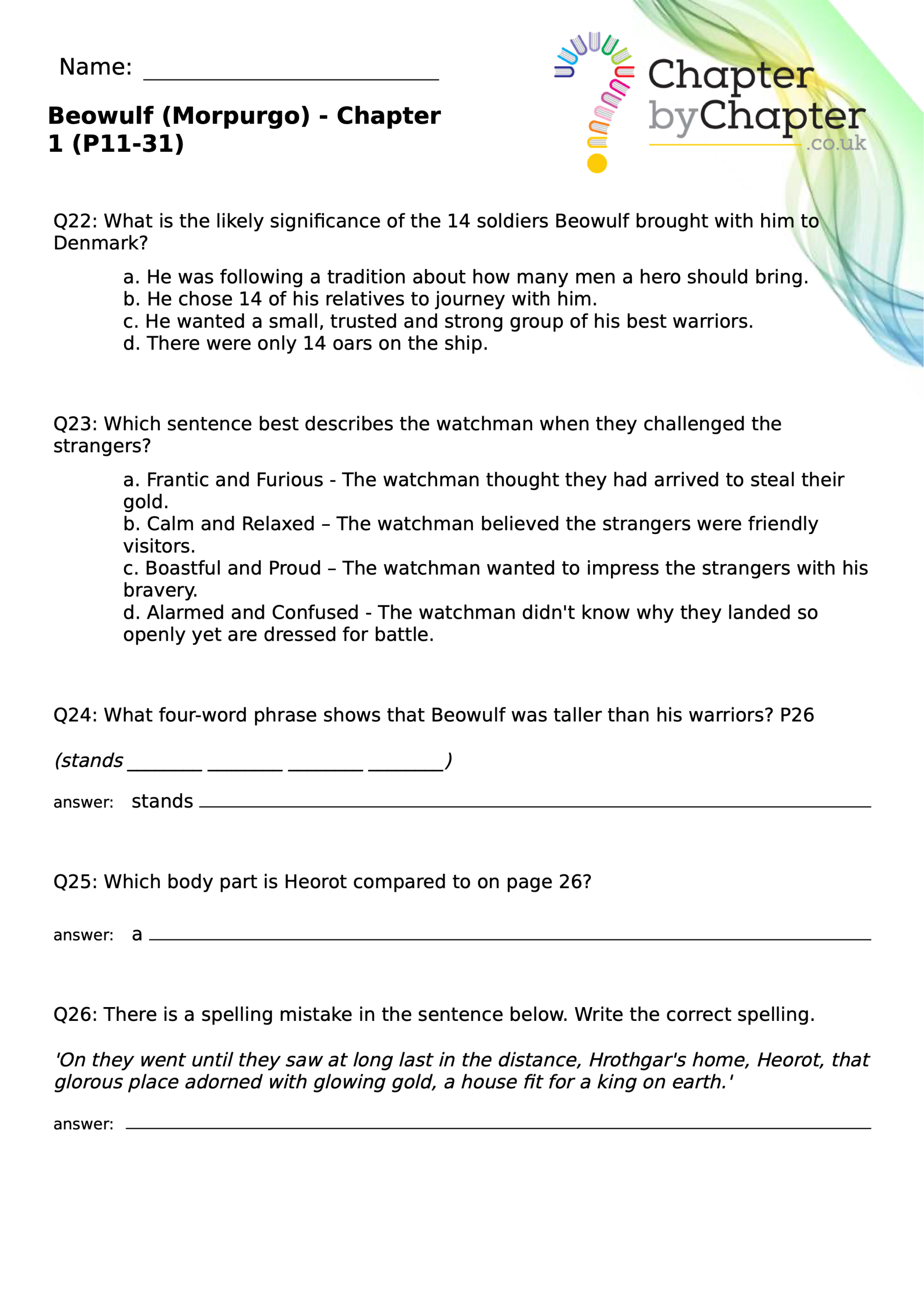 After reading the chapter 1 pages 11-31 with your KS2 class, you can immediately complete our high-quality comprehension questions, ready-made for Year 4 and 5 and created by a practising KS2 teacher in the UK.