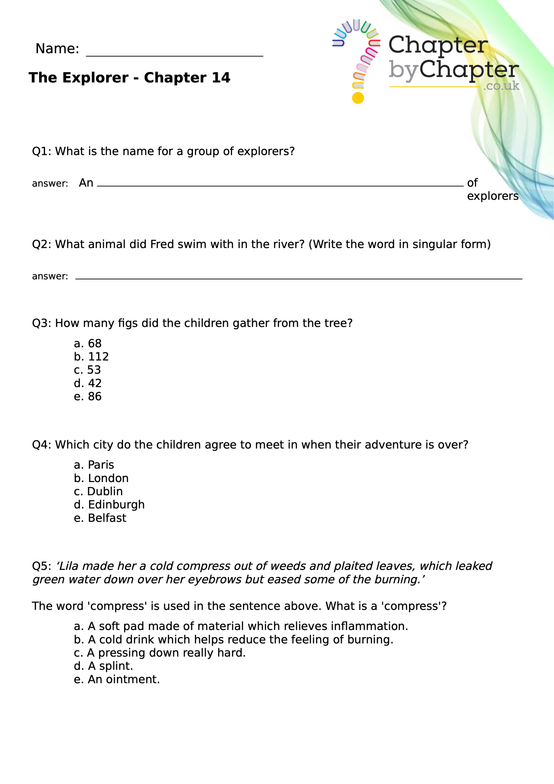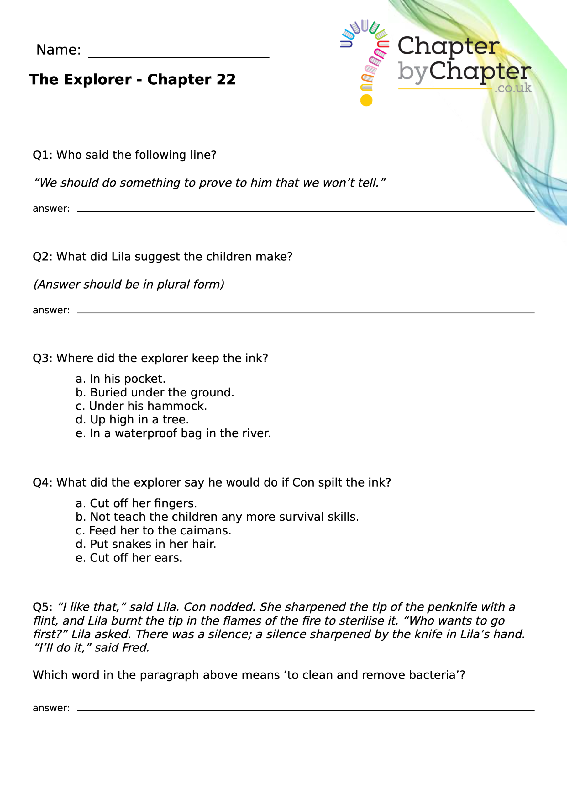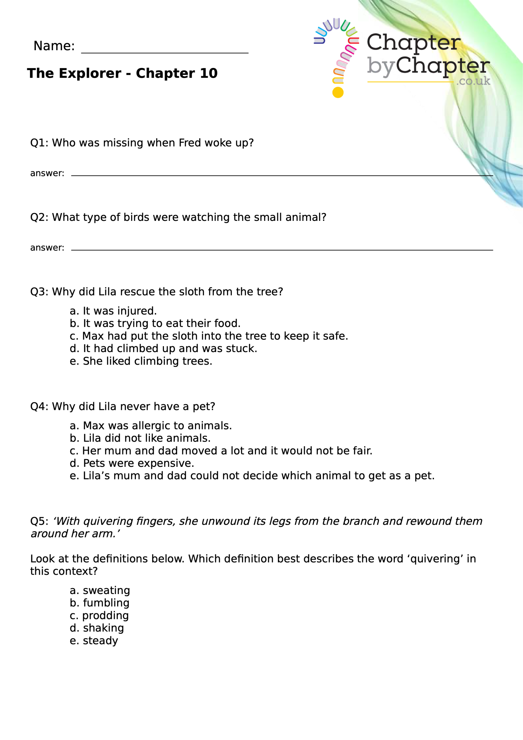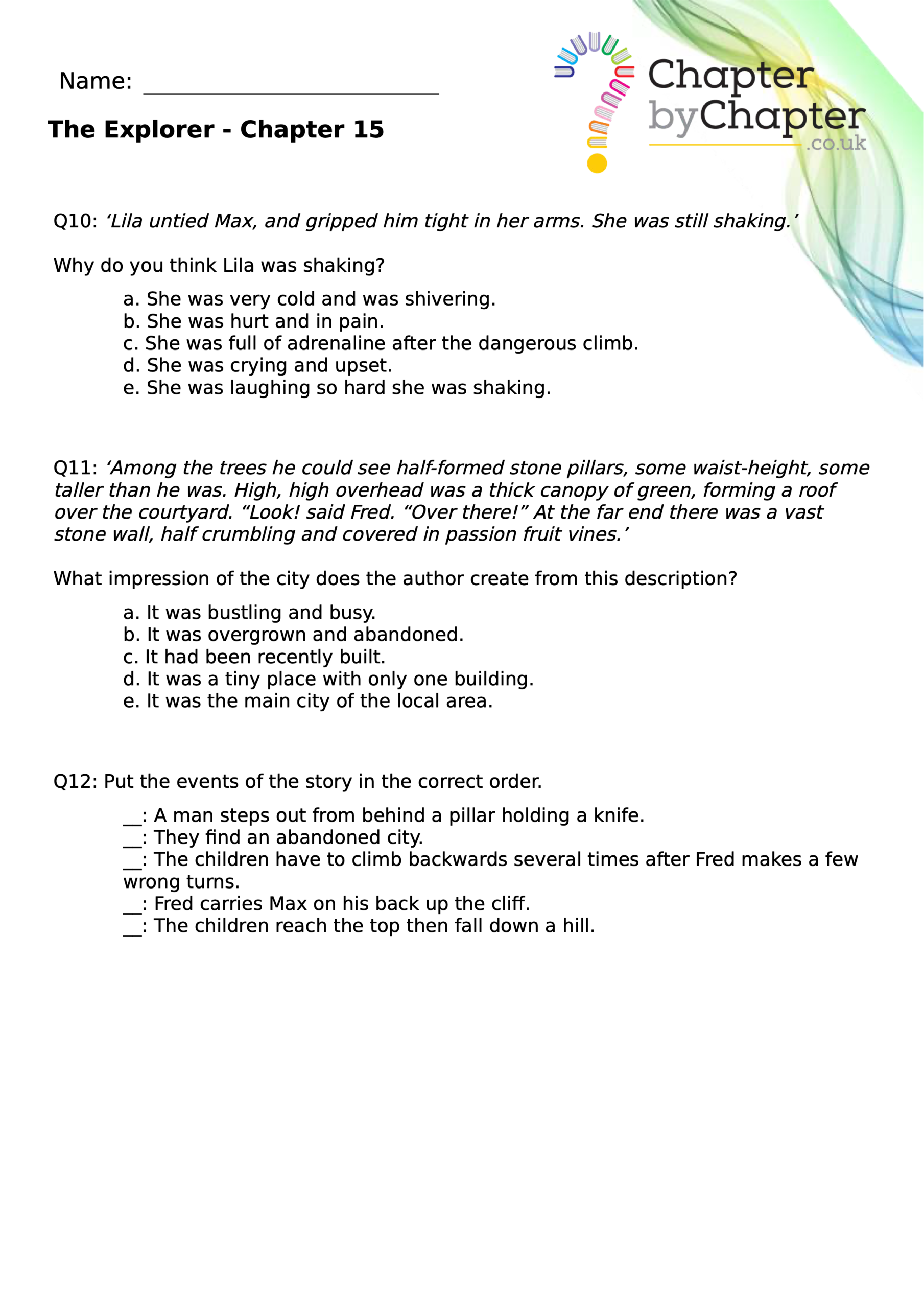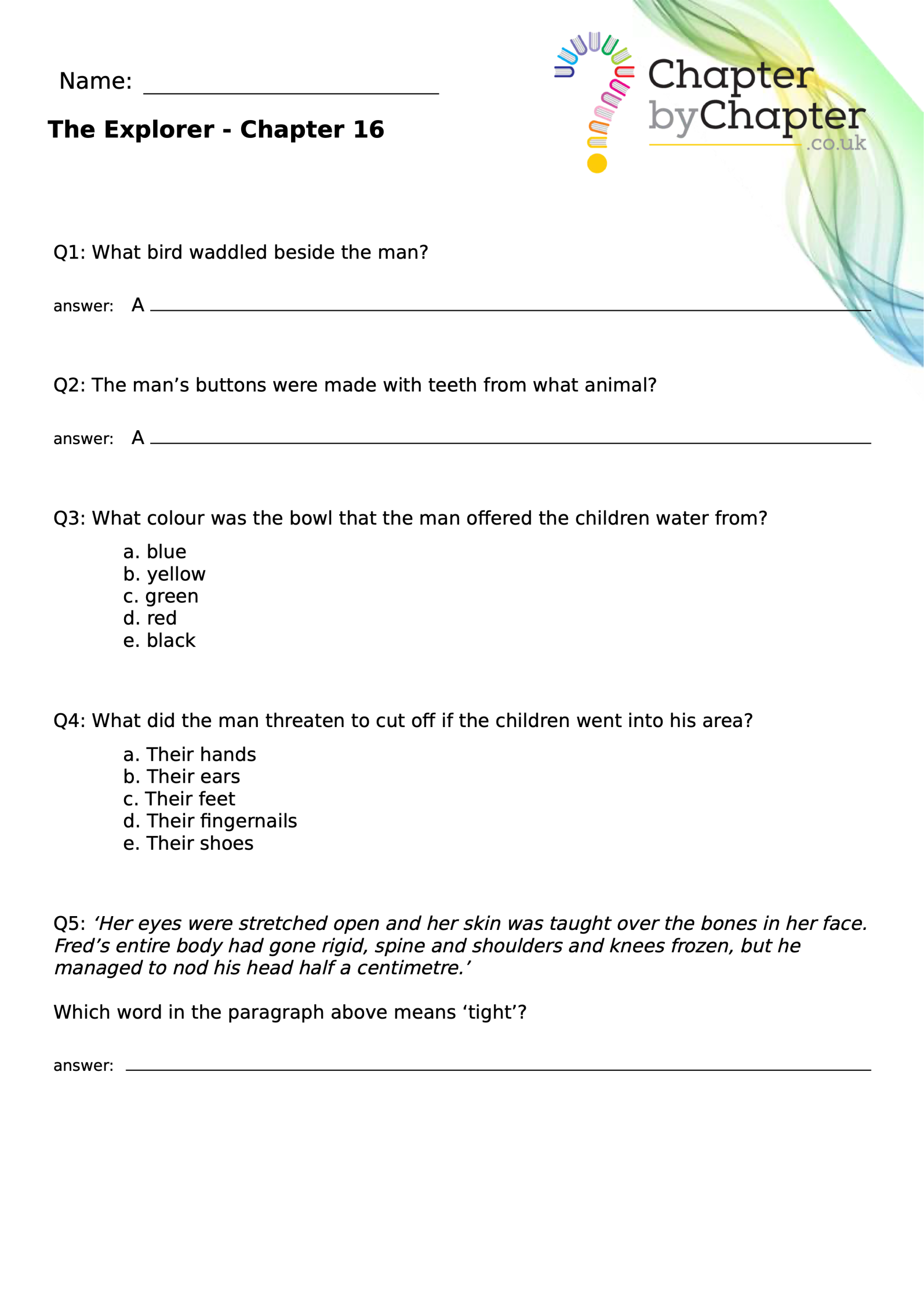 Print our question set aimed at KS2 linked to Chapter 10 of The Explorer.