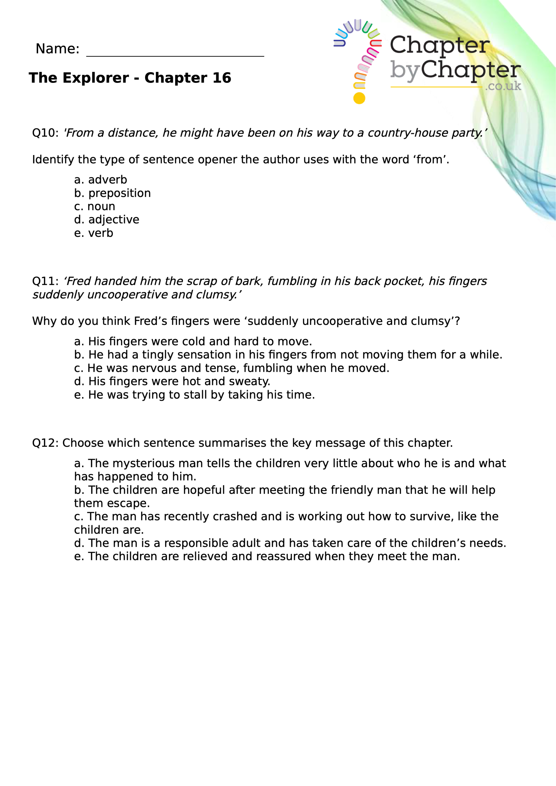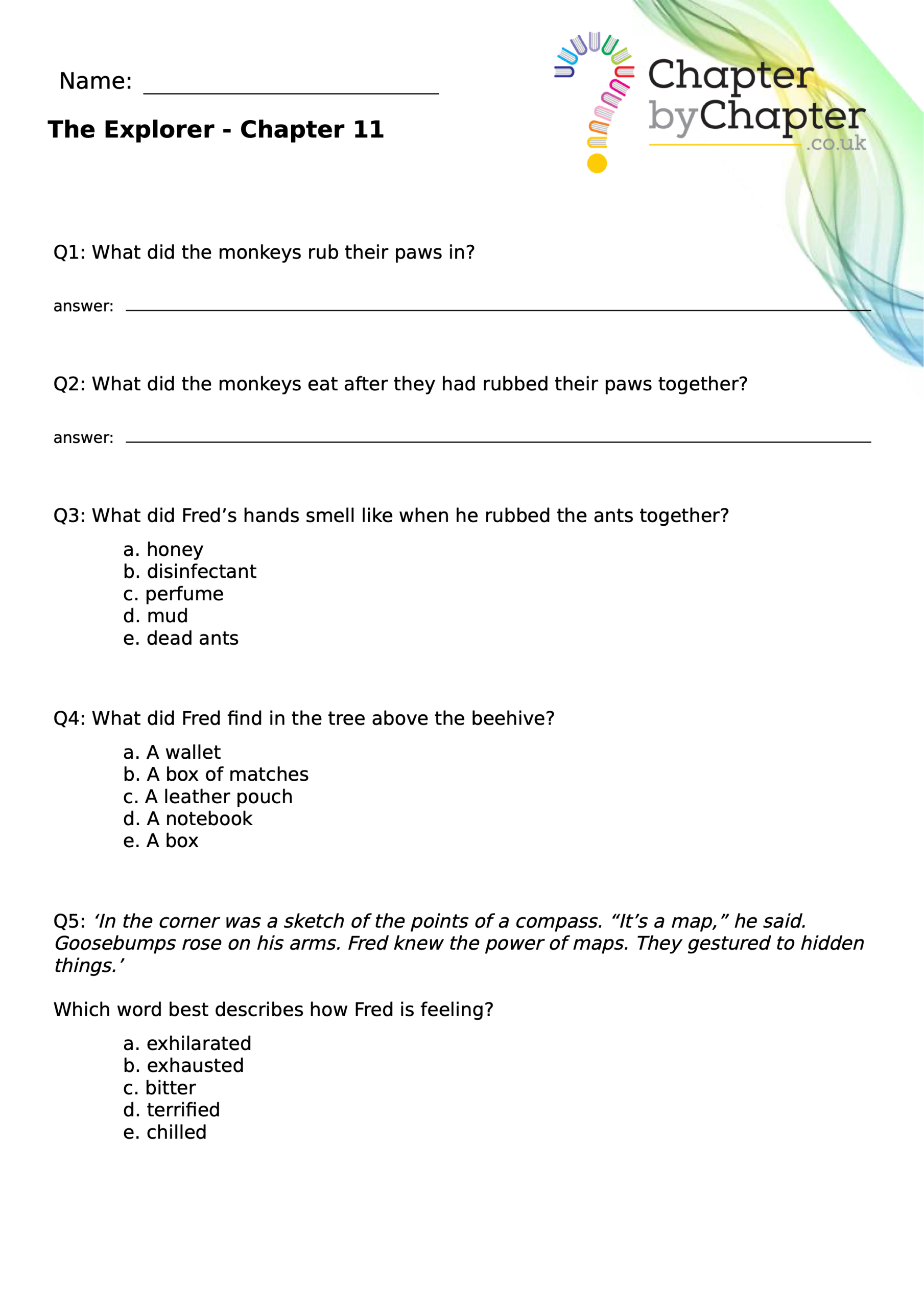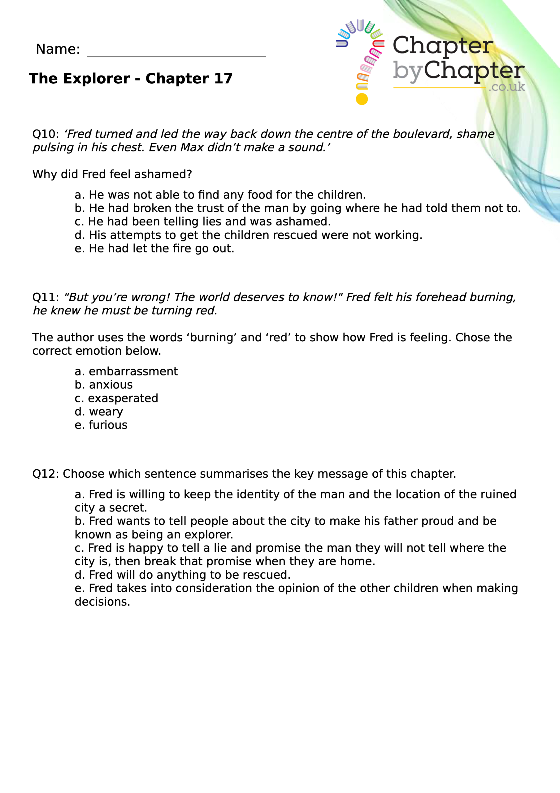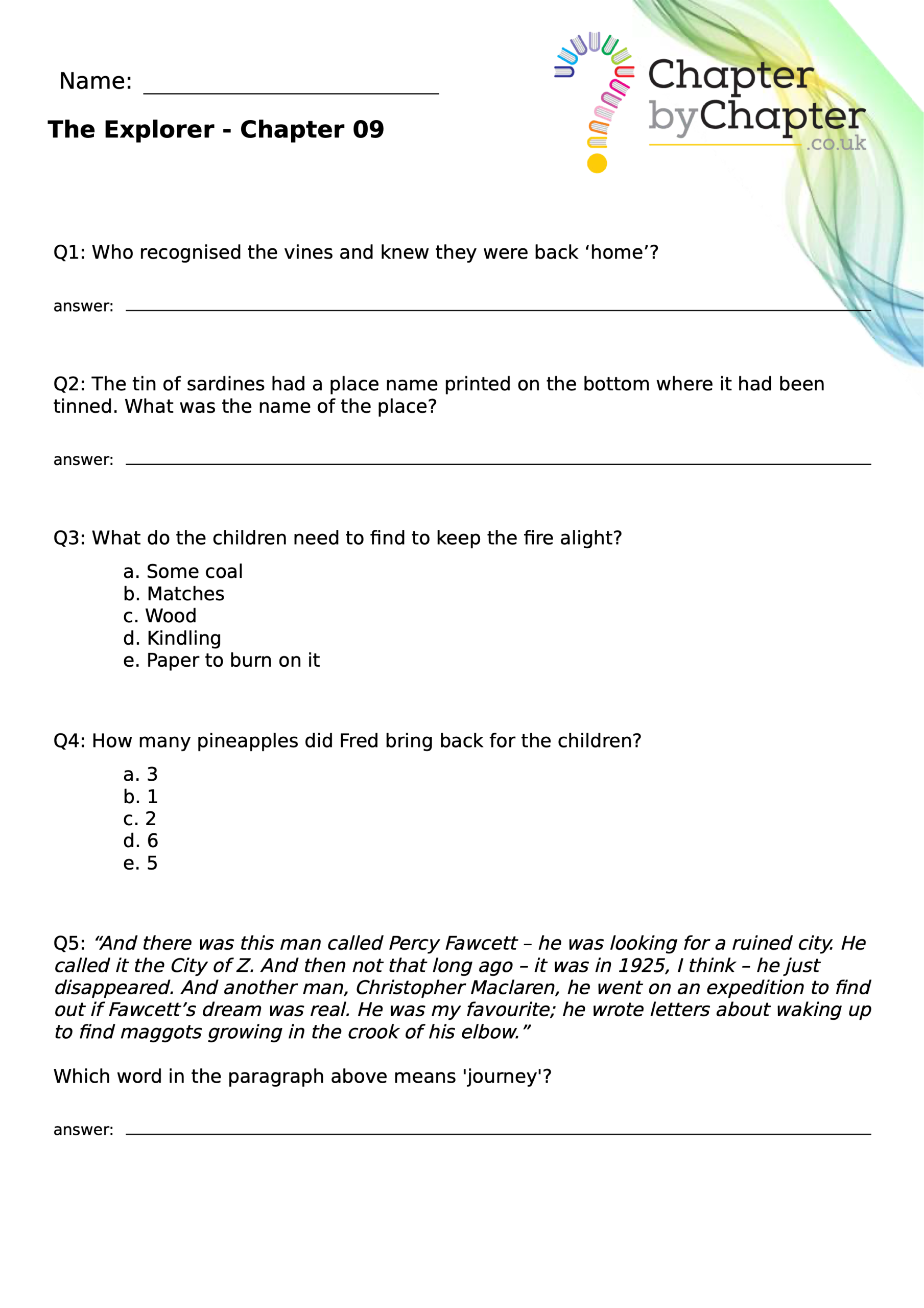 Print our question set aimed at KS2 linked to Chapter 10 of The Explorer.