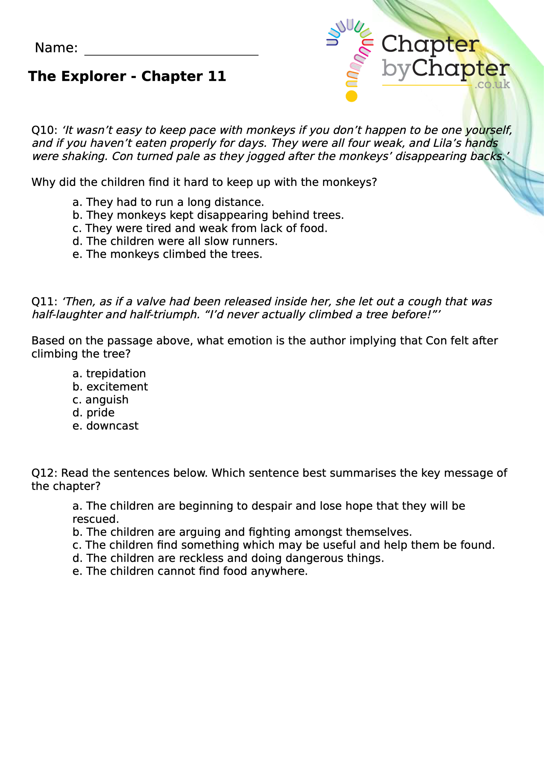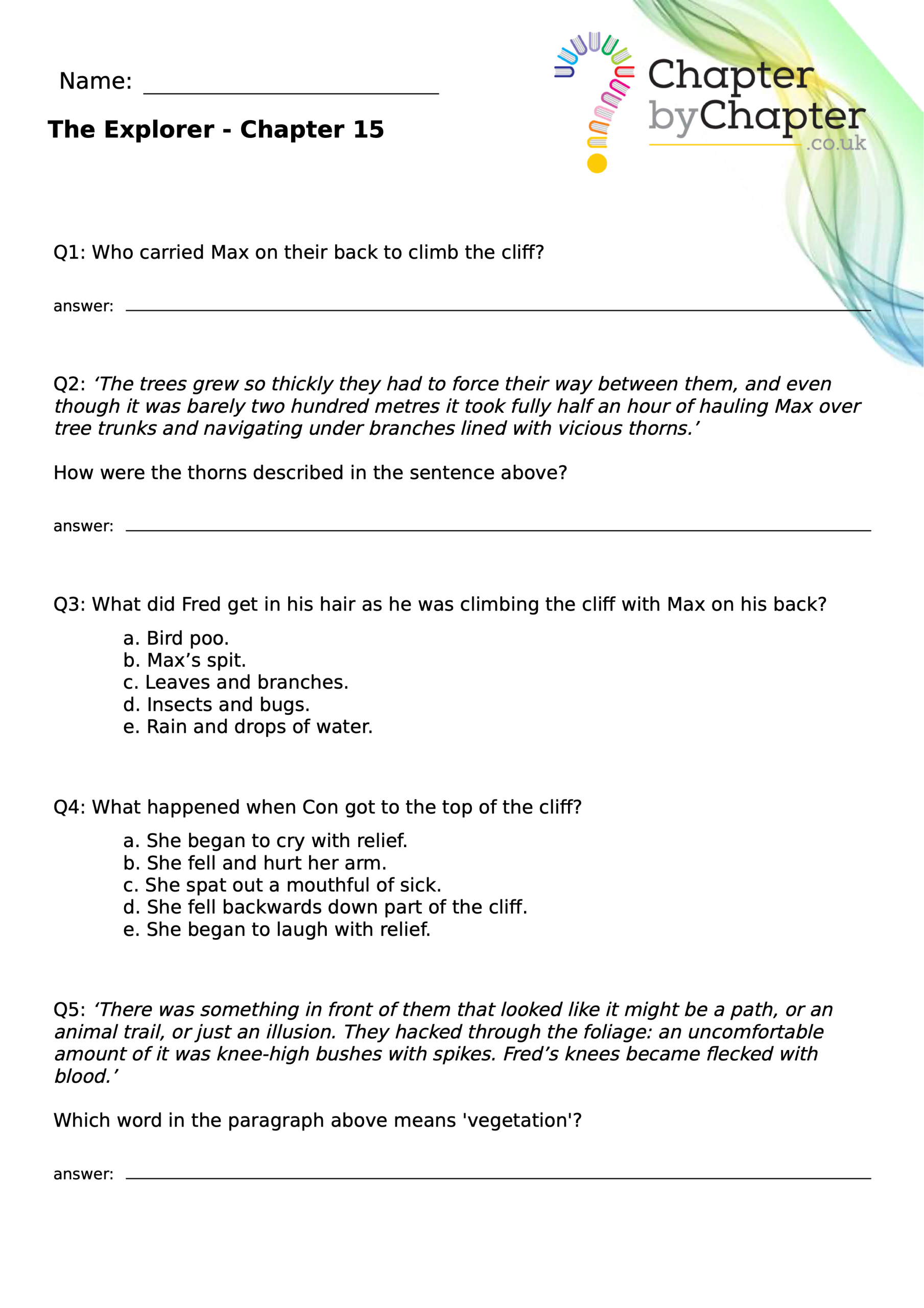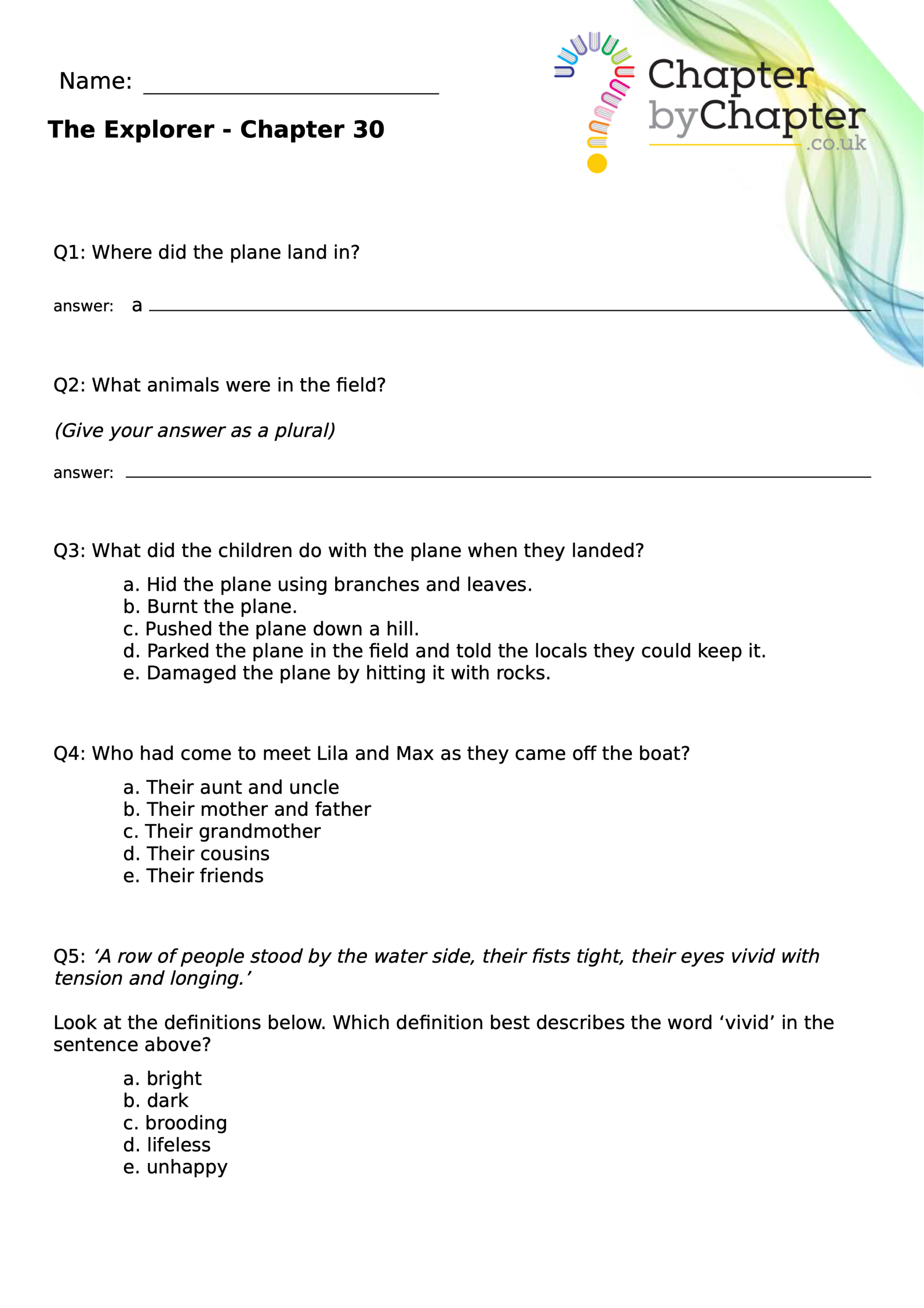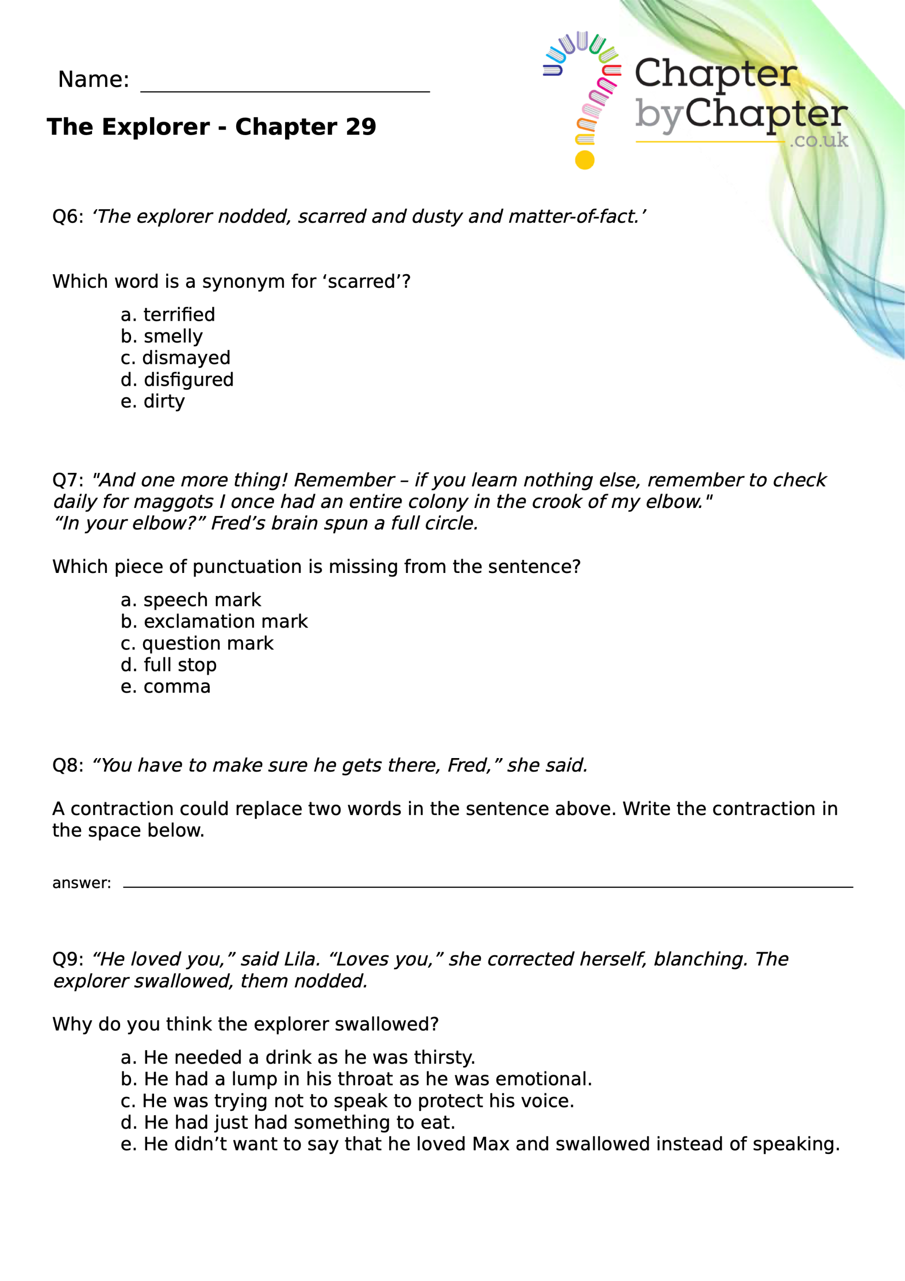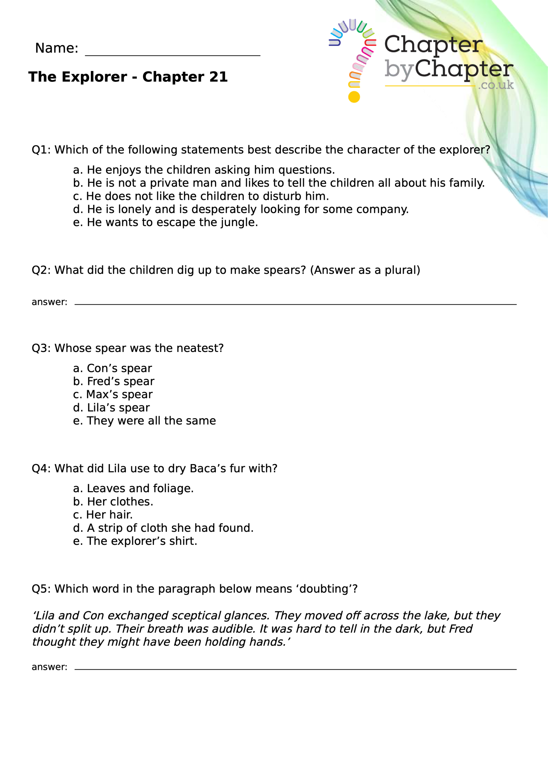 Print our question set aimed at KS2 linked to Chapter 10 of The Explorer.