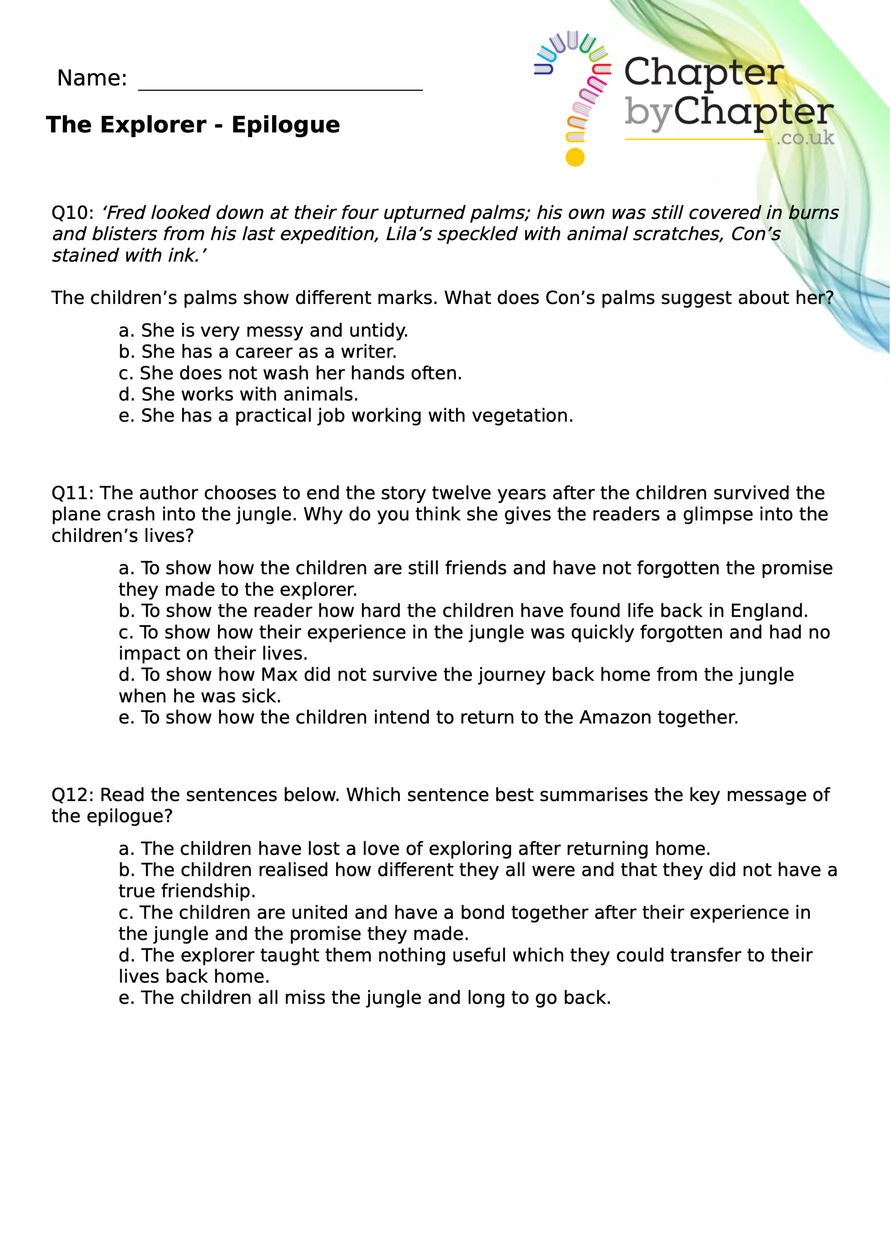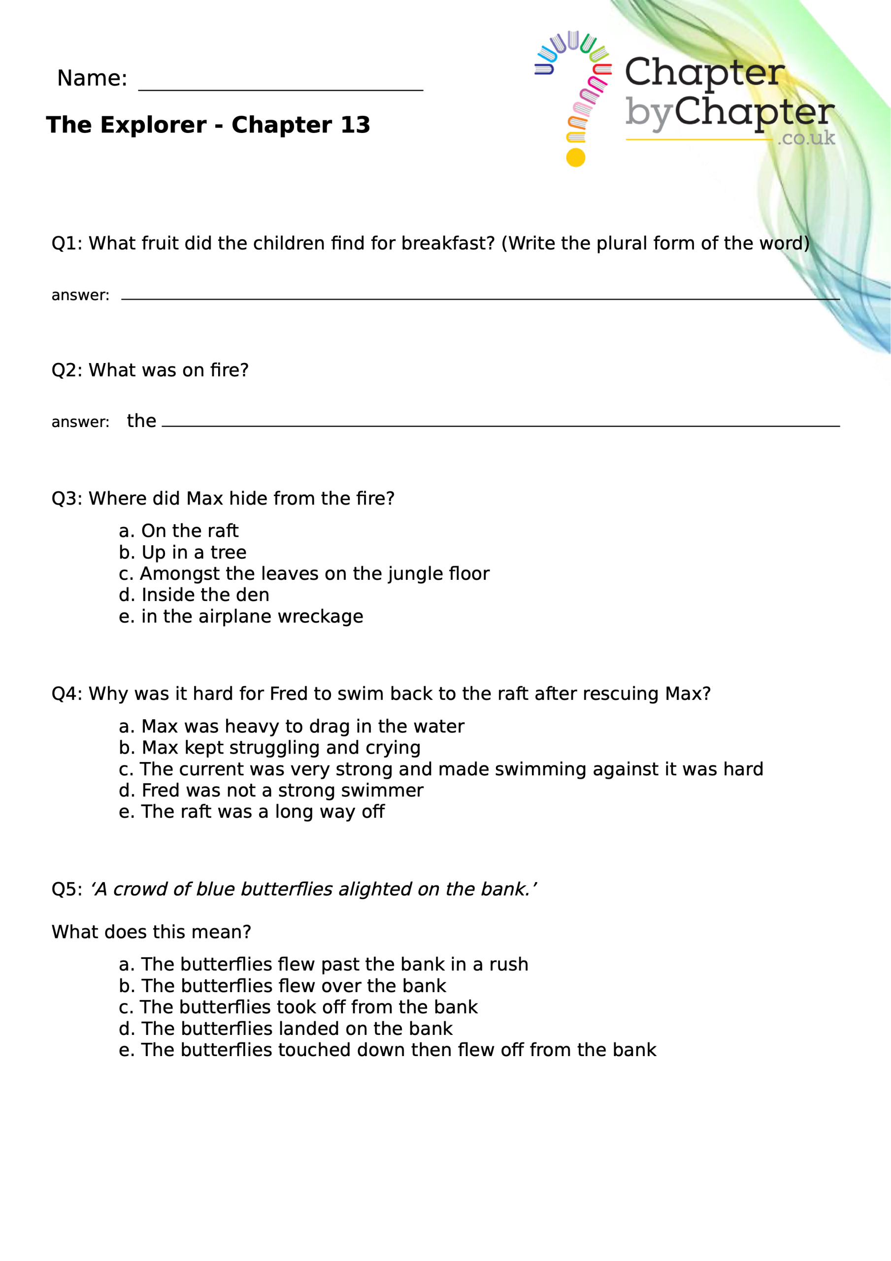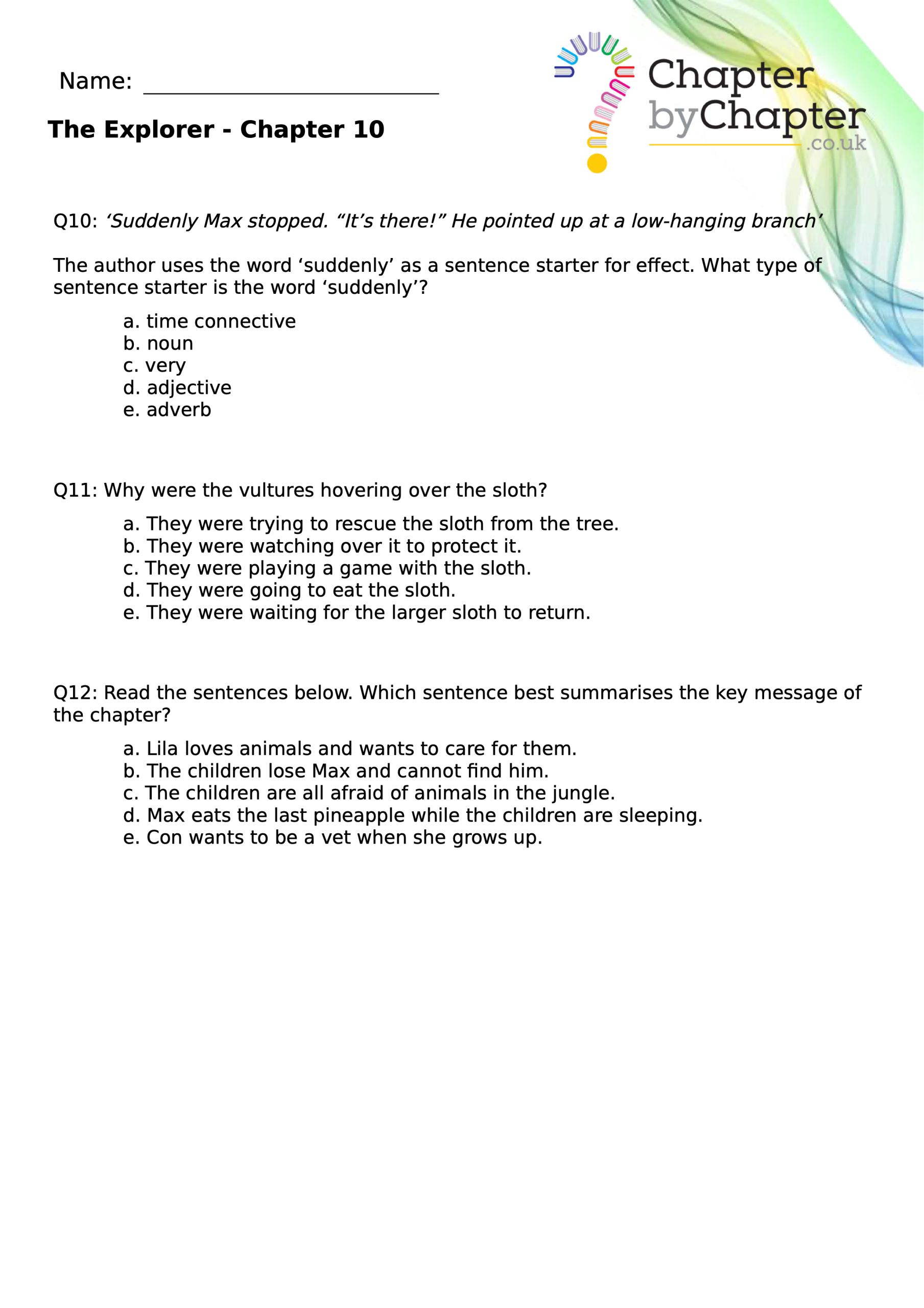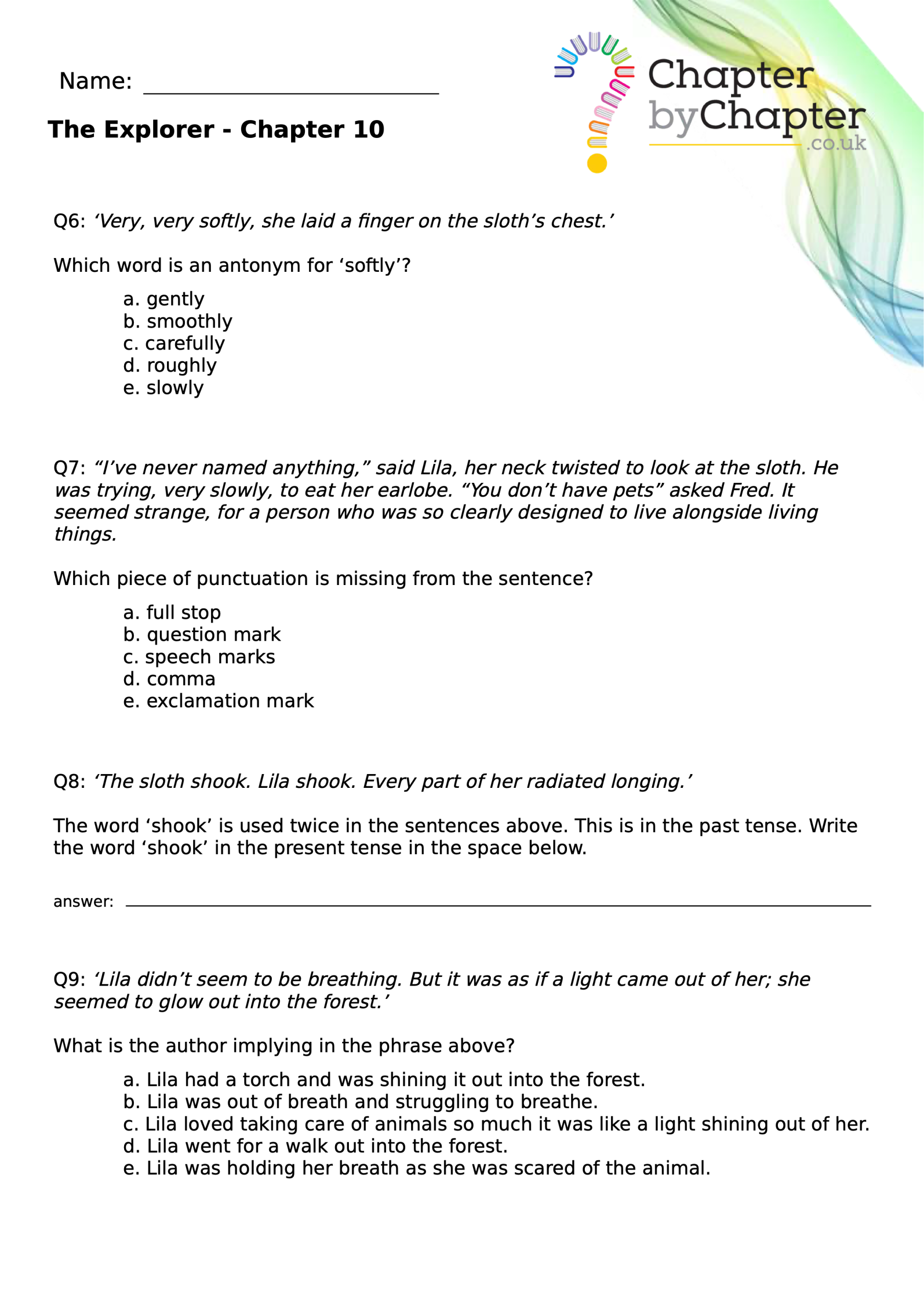 Print our question set aimed at KS2 linked to Chapter 10 of The Explorer.