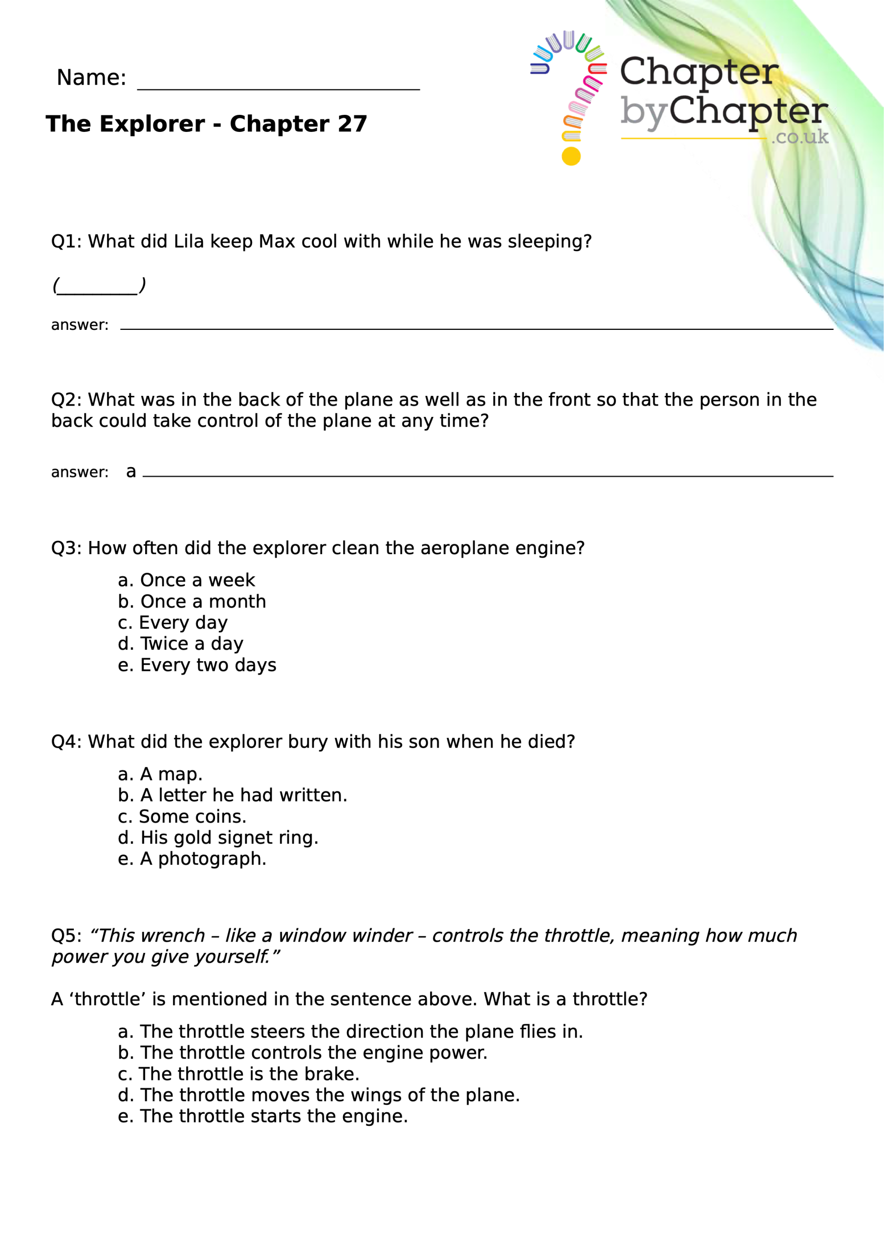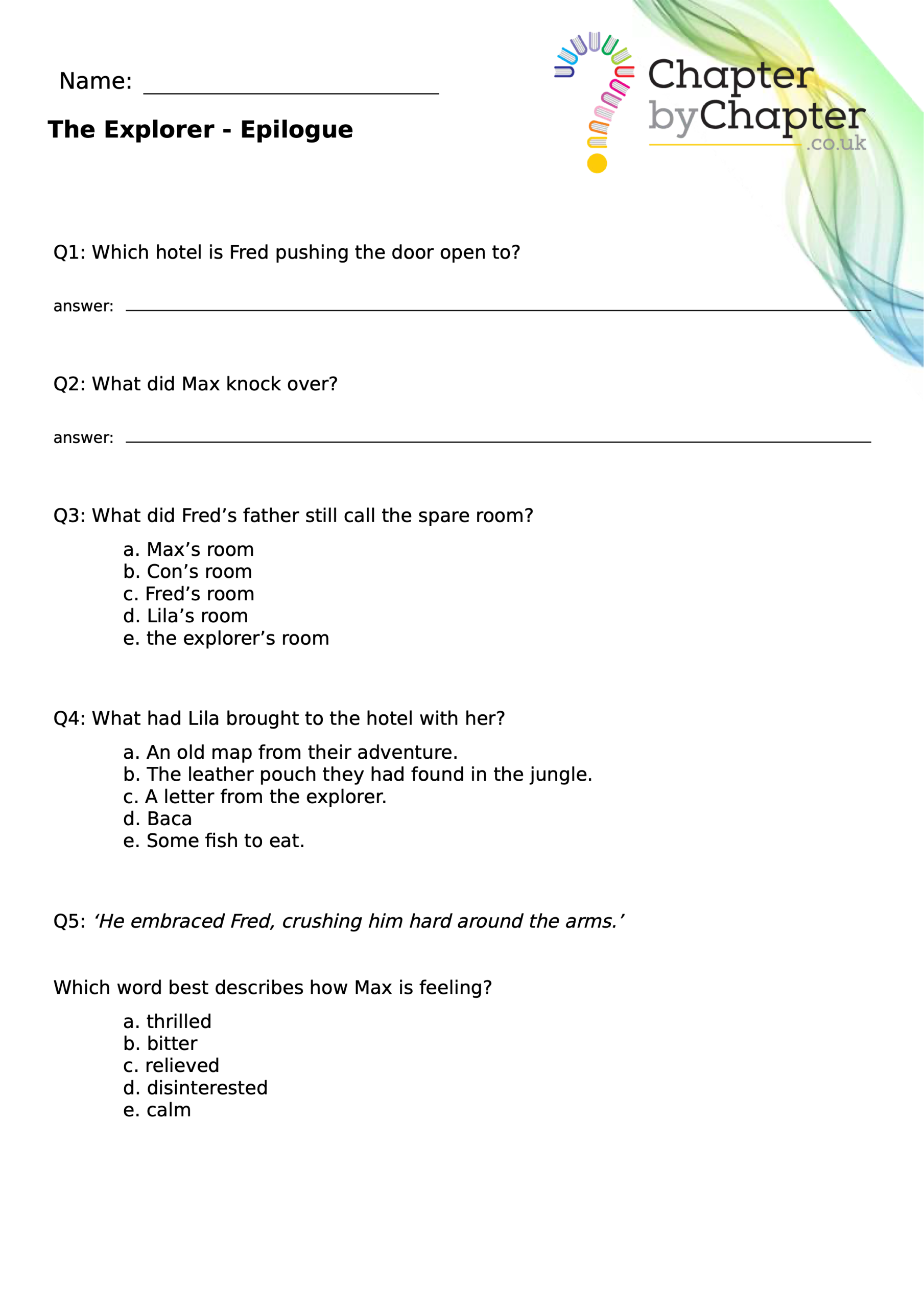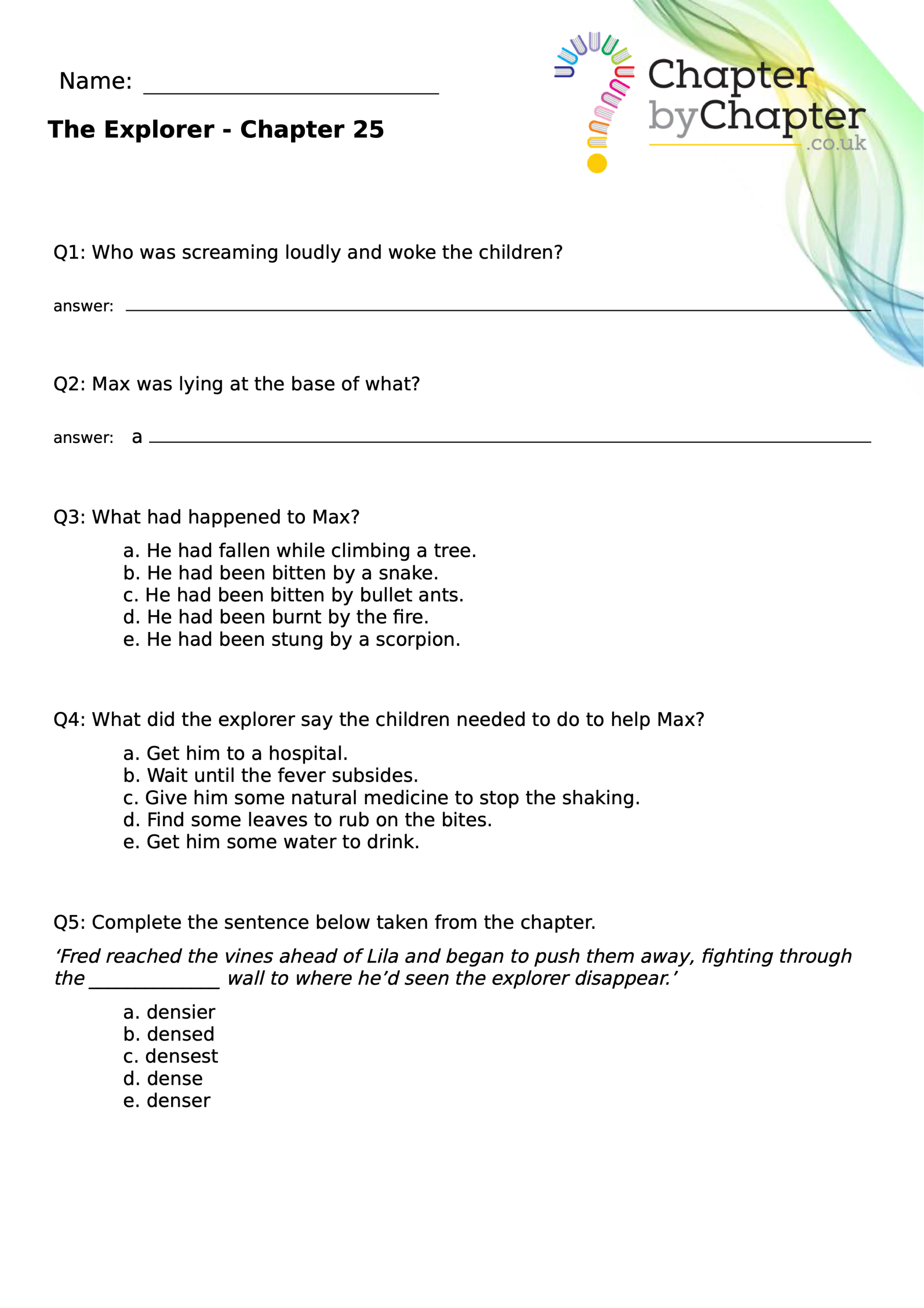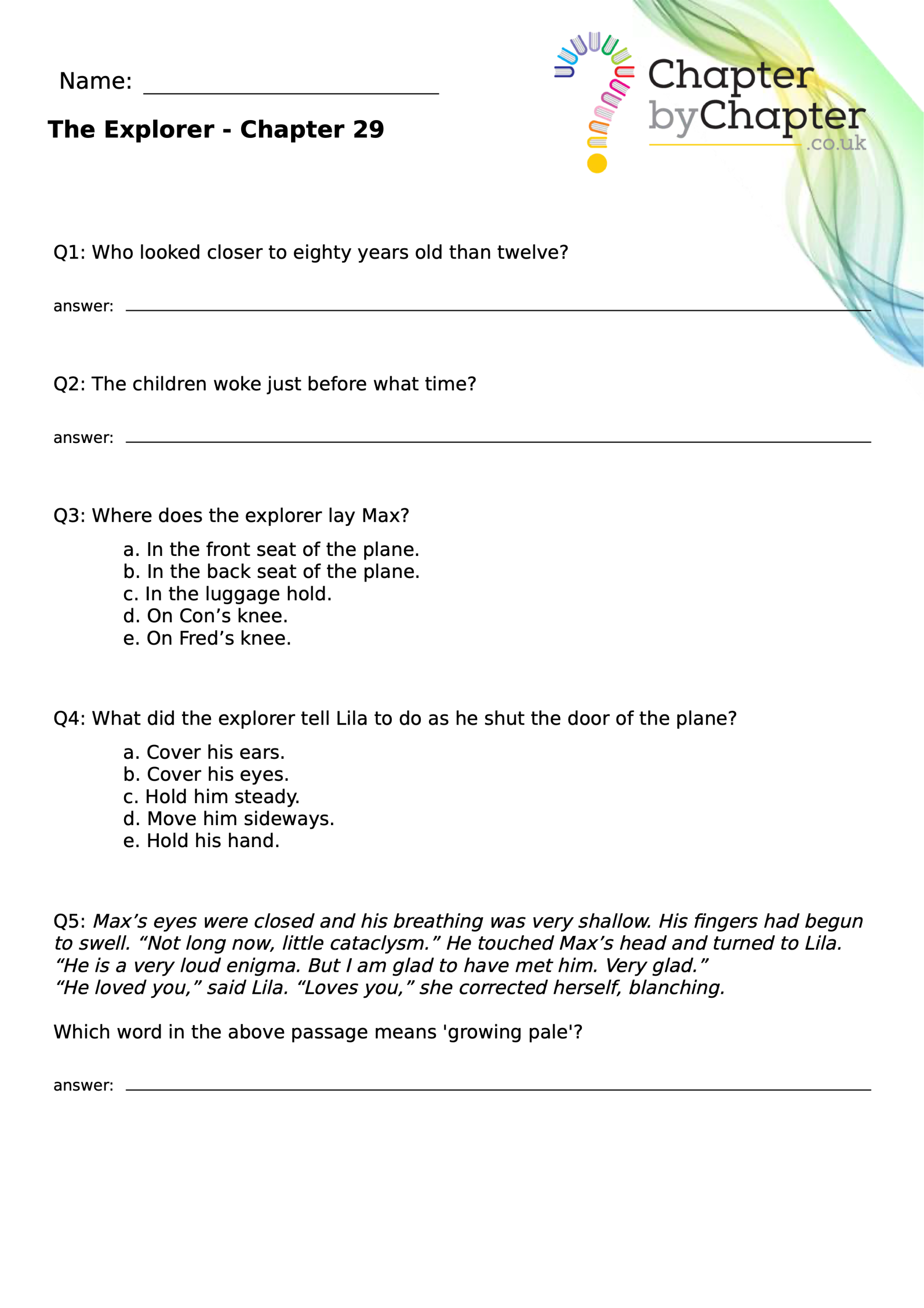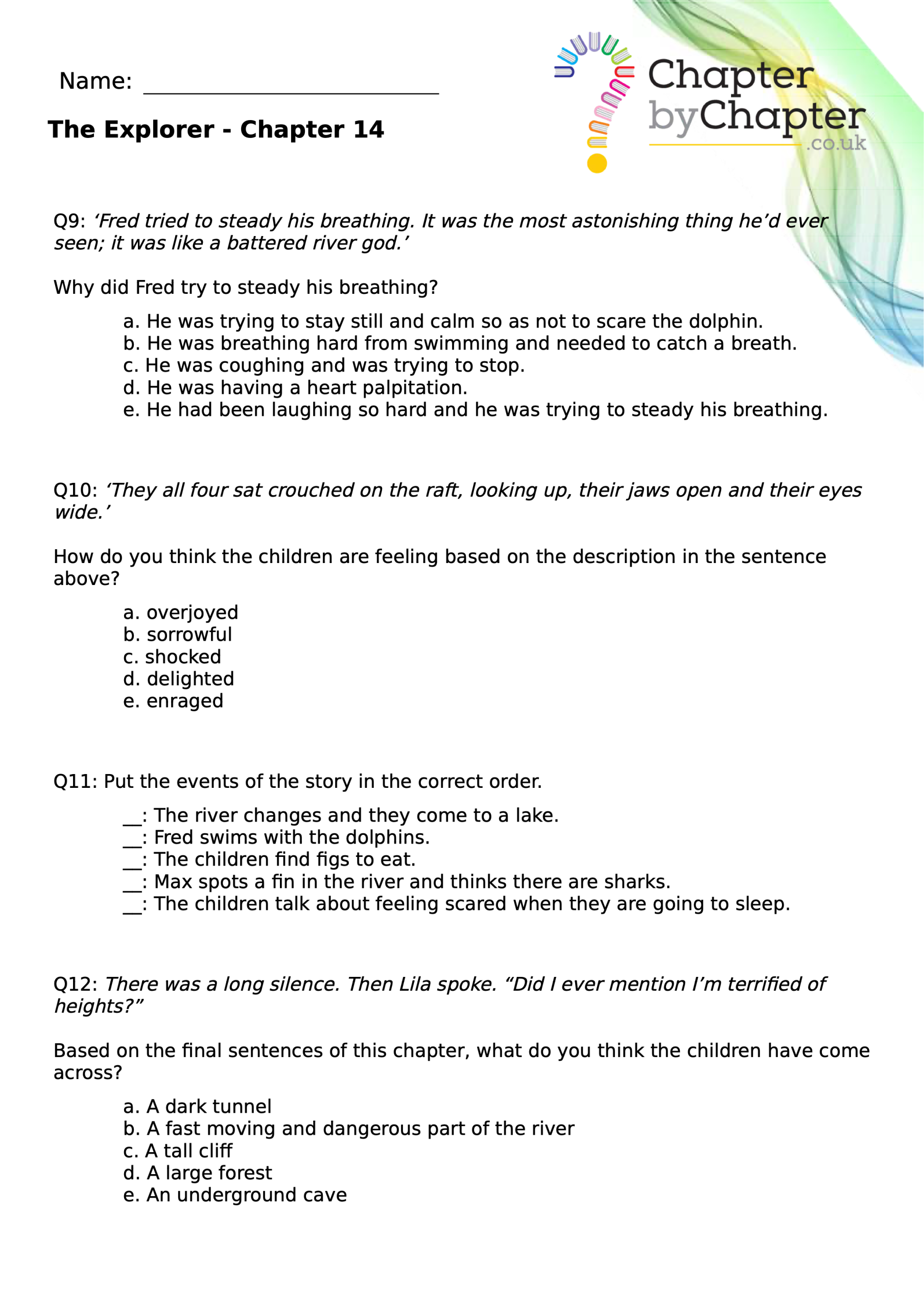 Print our question set aimed at KS2 linked to Chapter 10 of The Explorer.