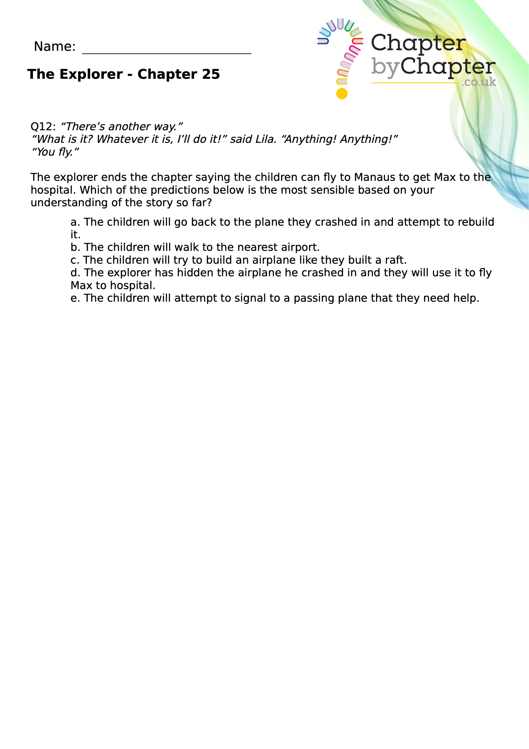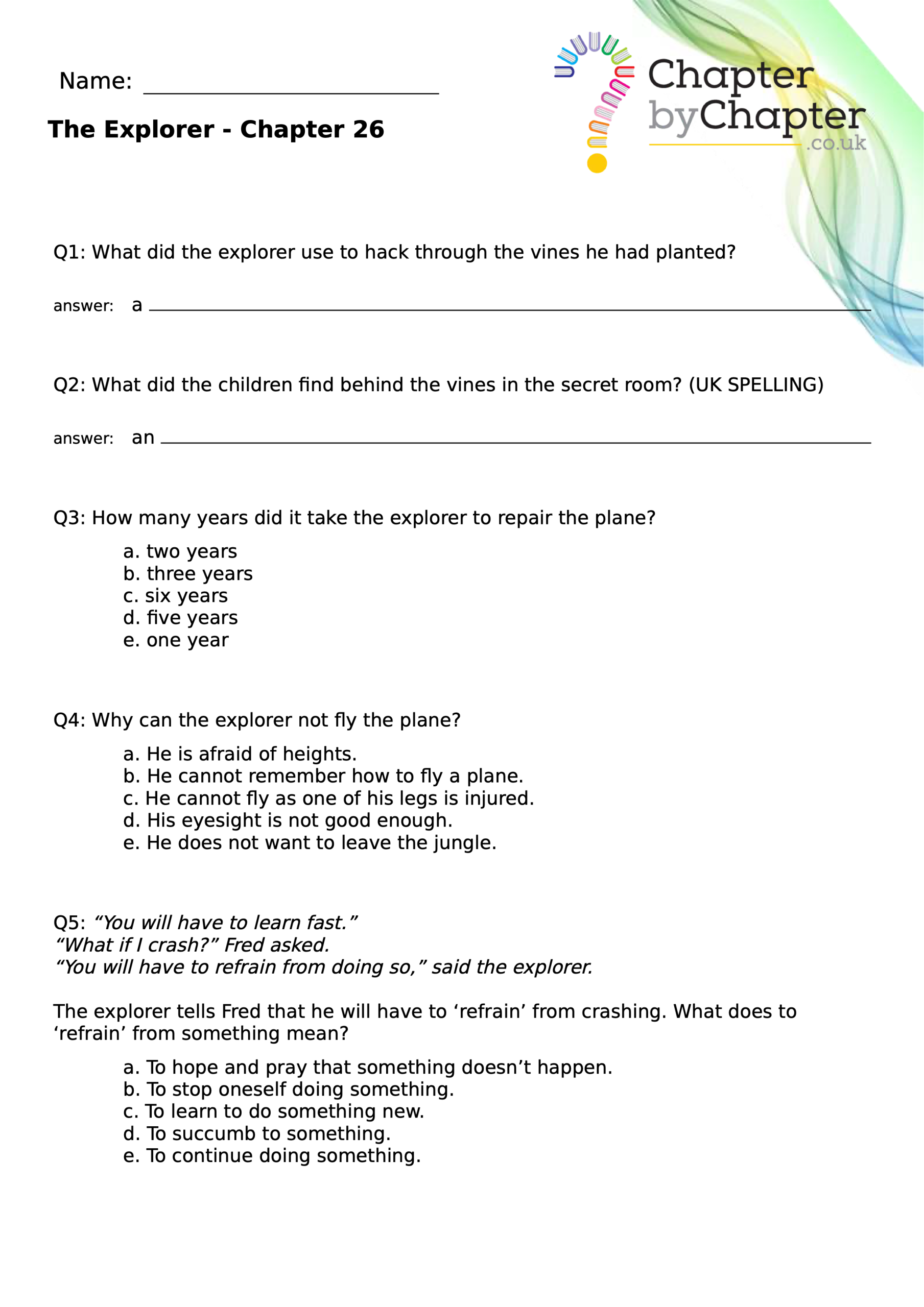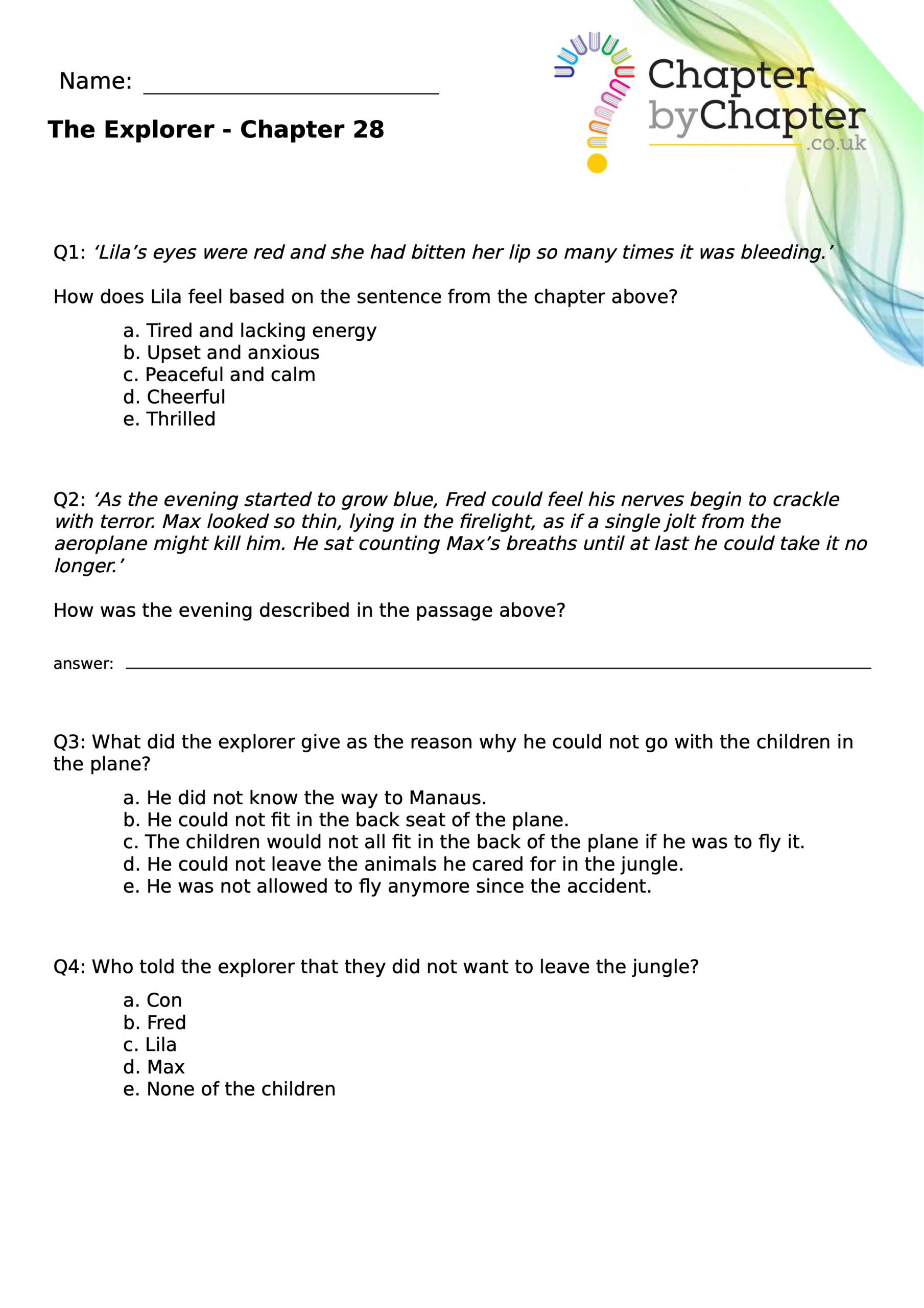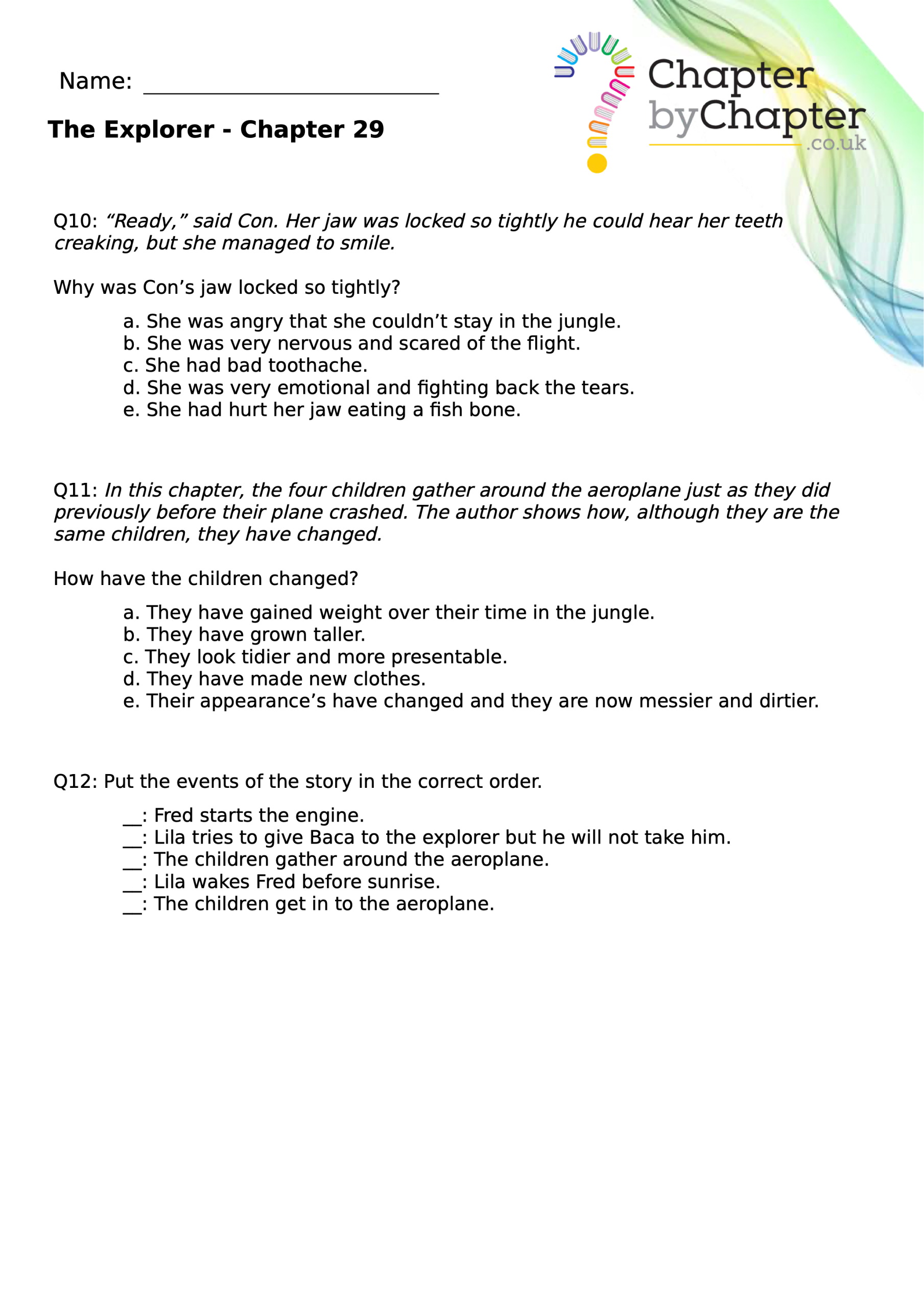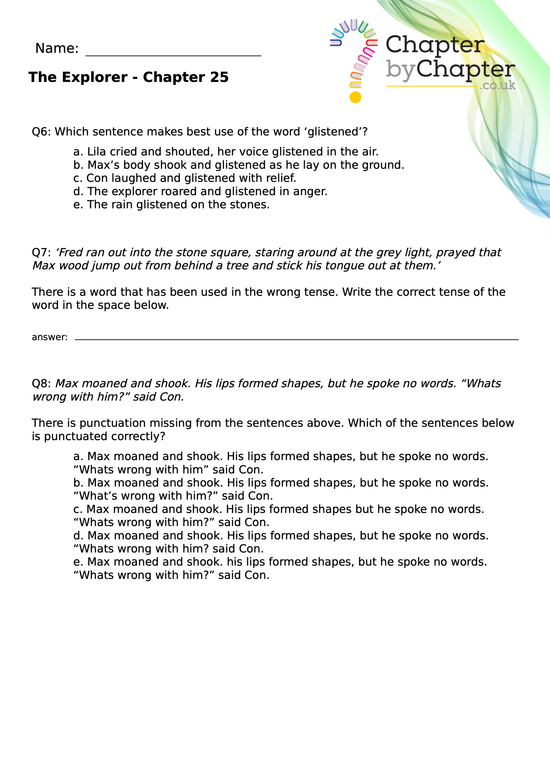 Another chapter comprehension pack, this time linked to Chapter 24 of The Explorer.