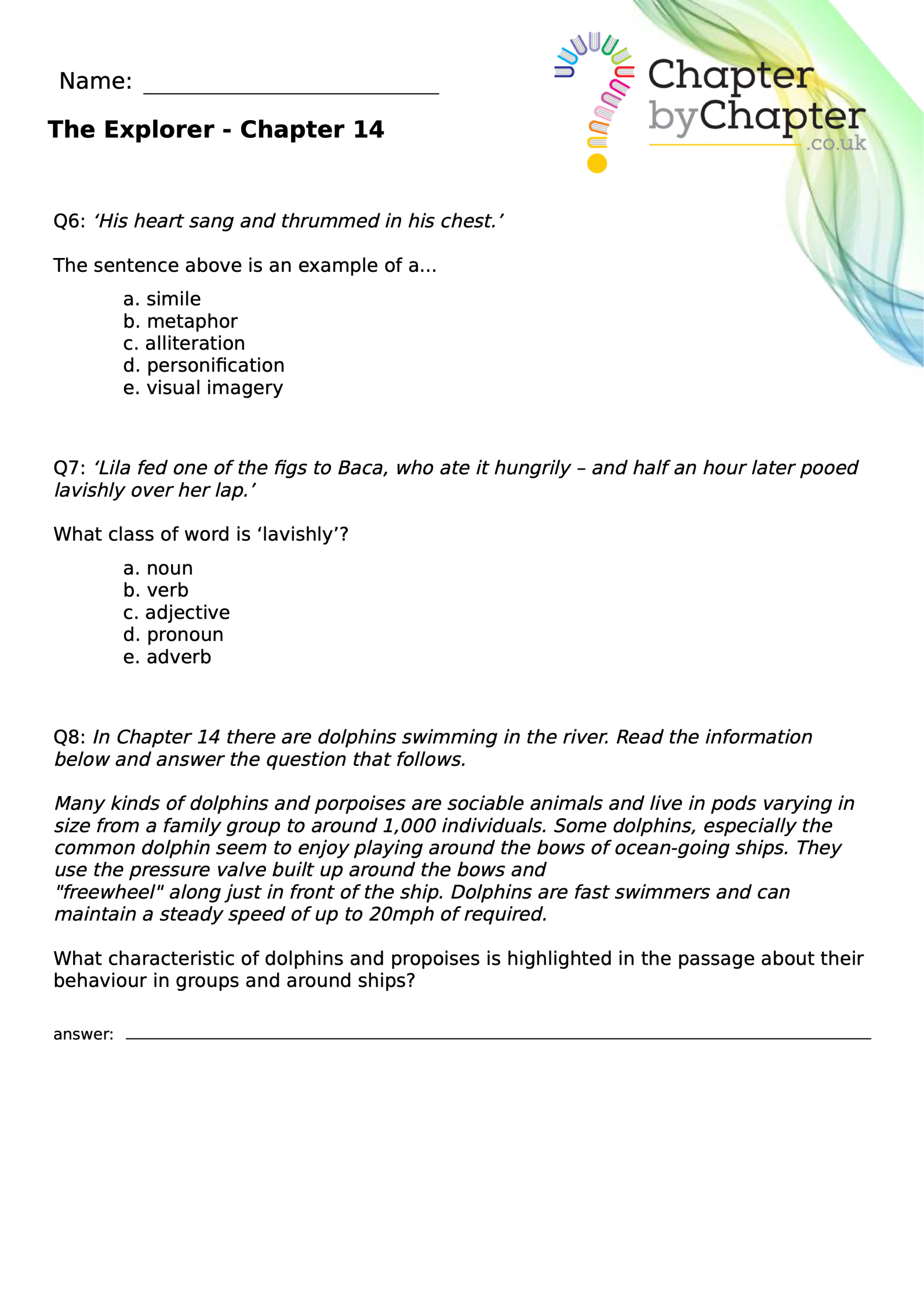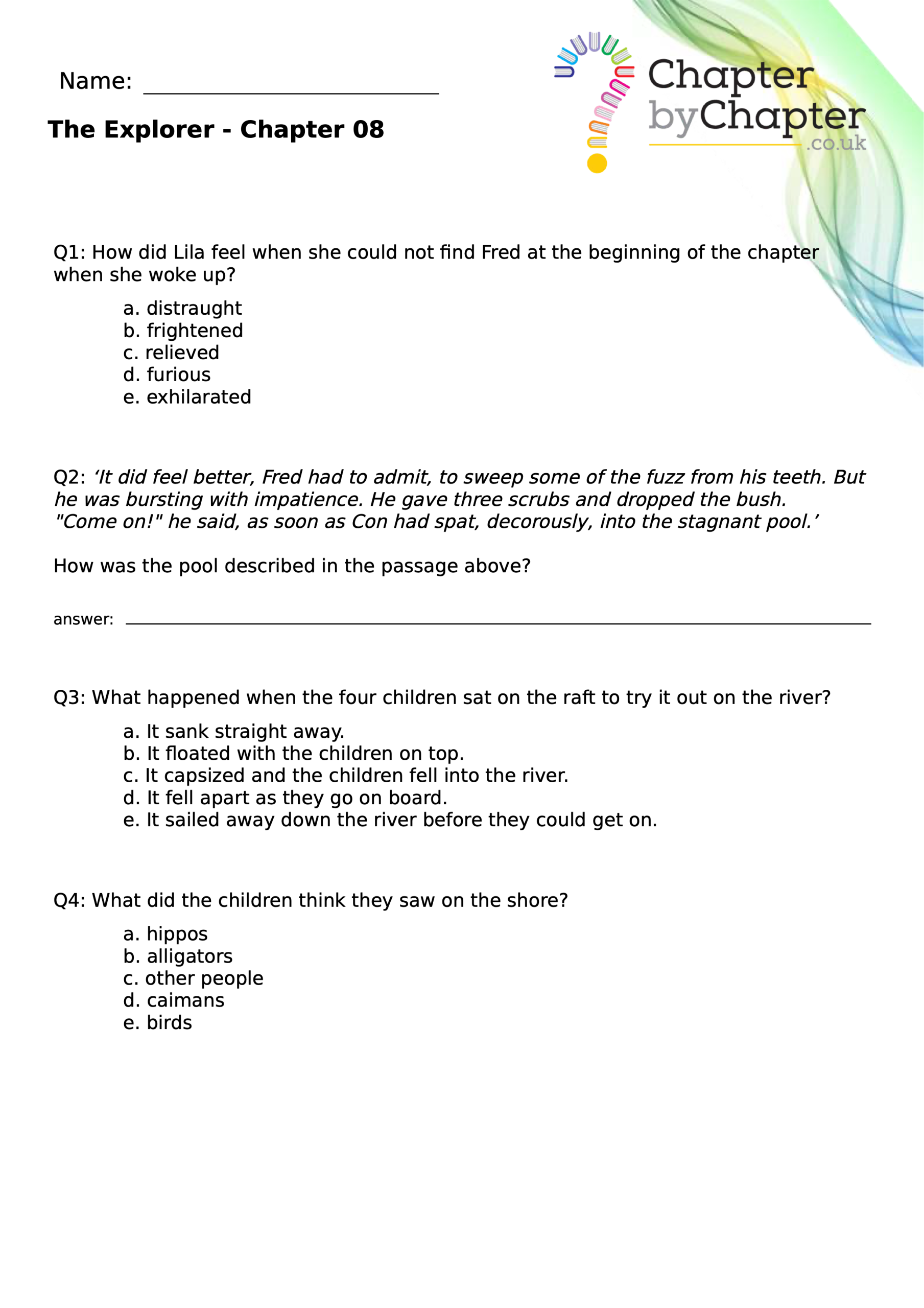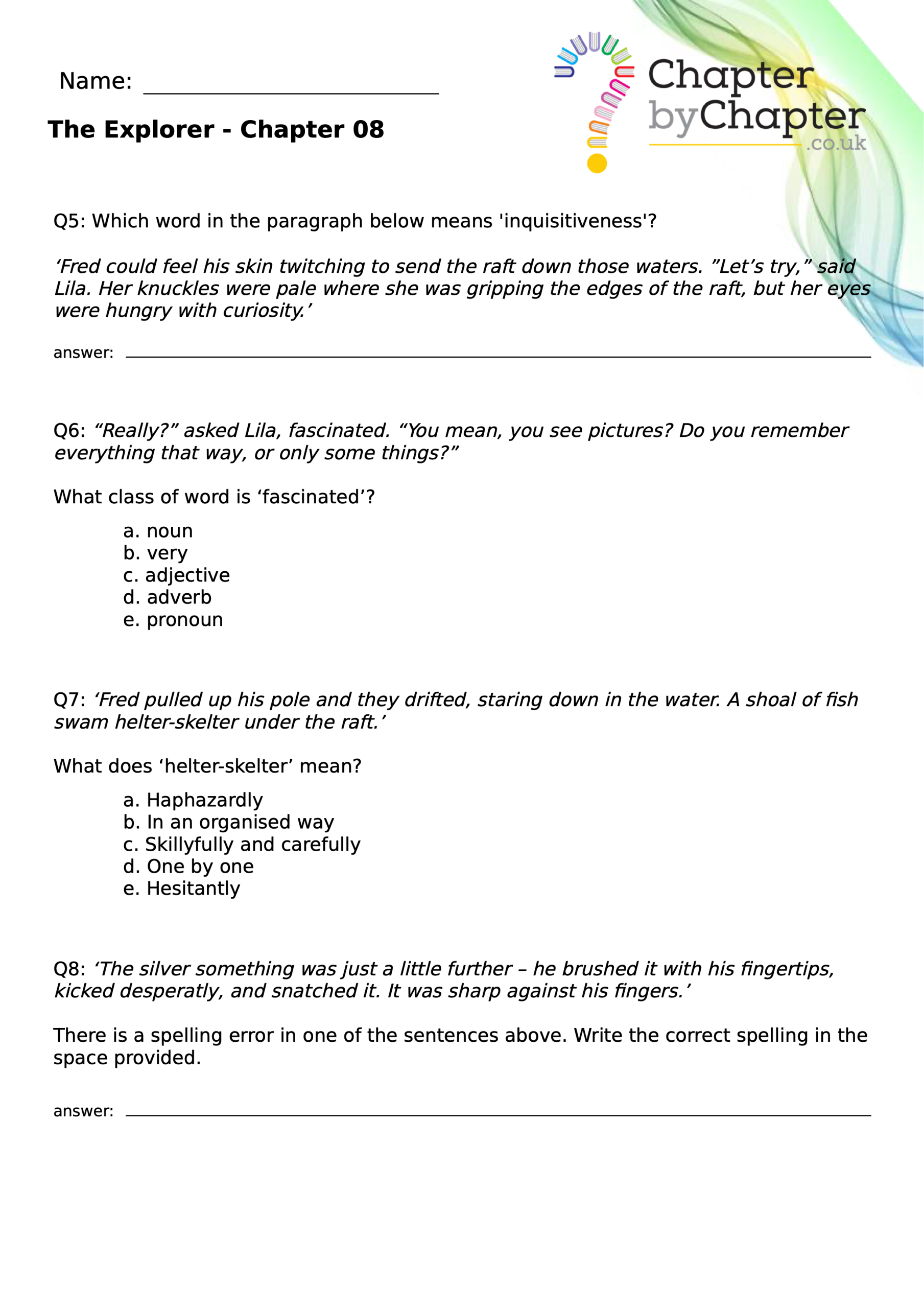 Print our question set aimed at KS2 linked to Chapter 8 of The Explorer.