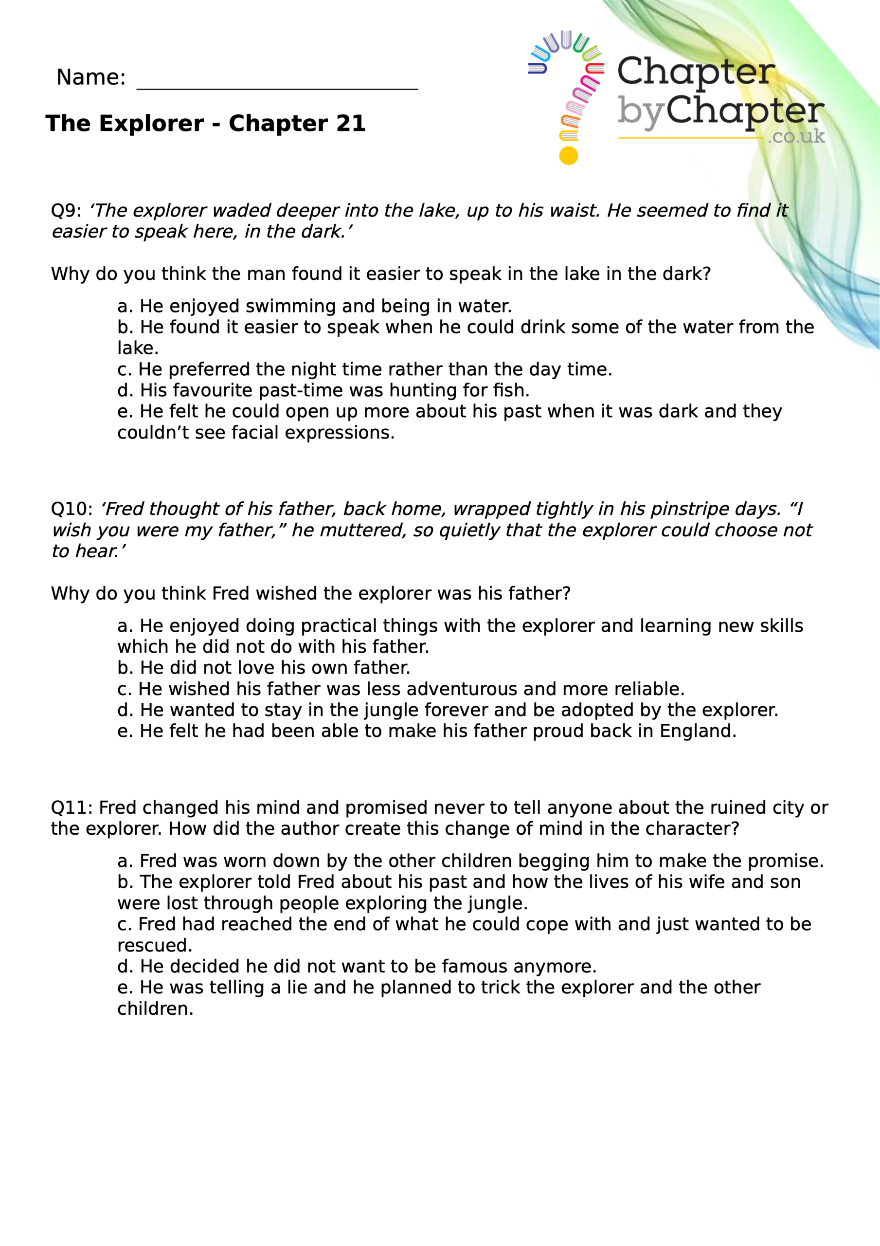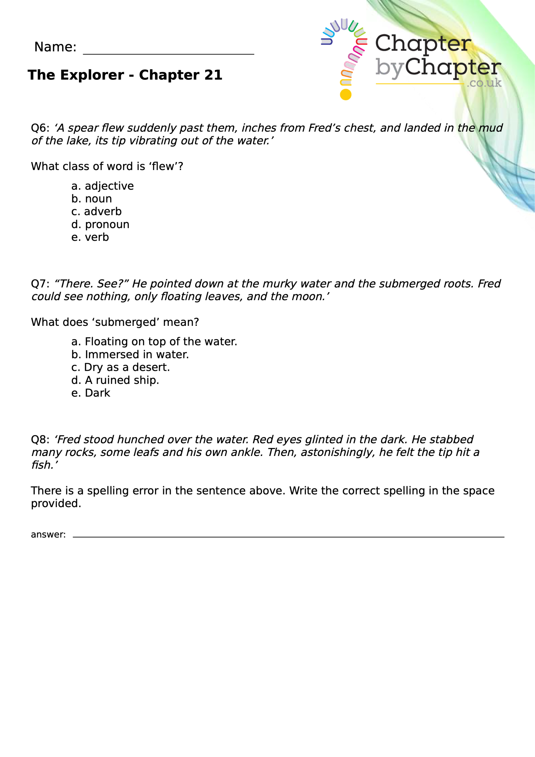 Another chapter comprehension pack, this time linked to Chapter 21 of The Explorer.