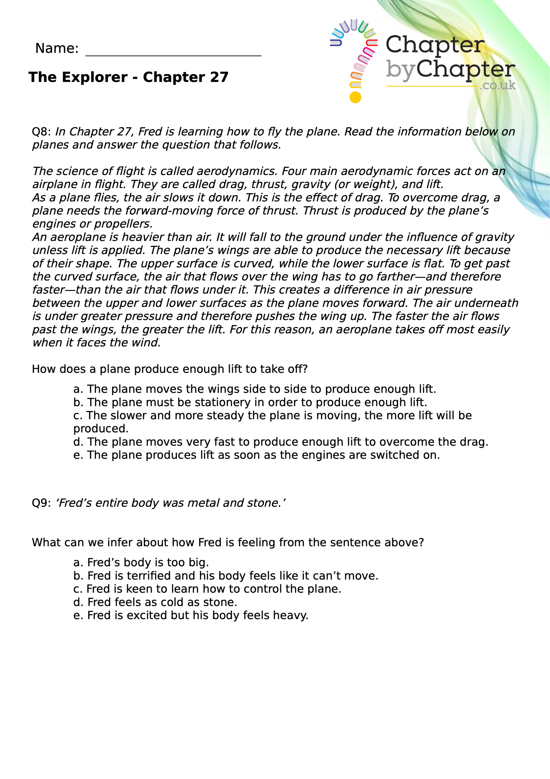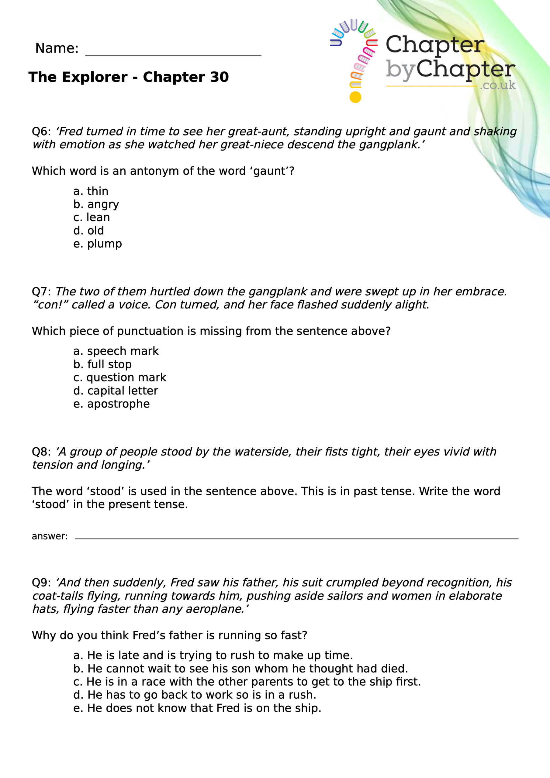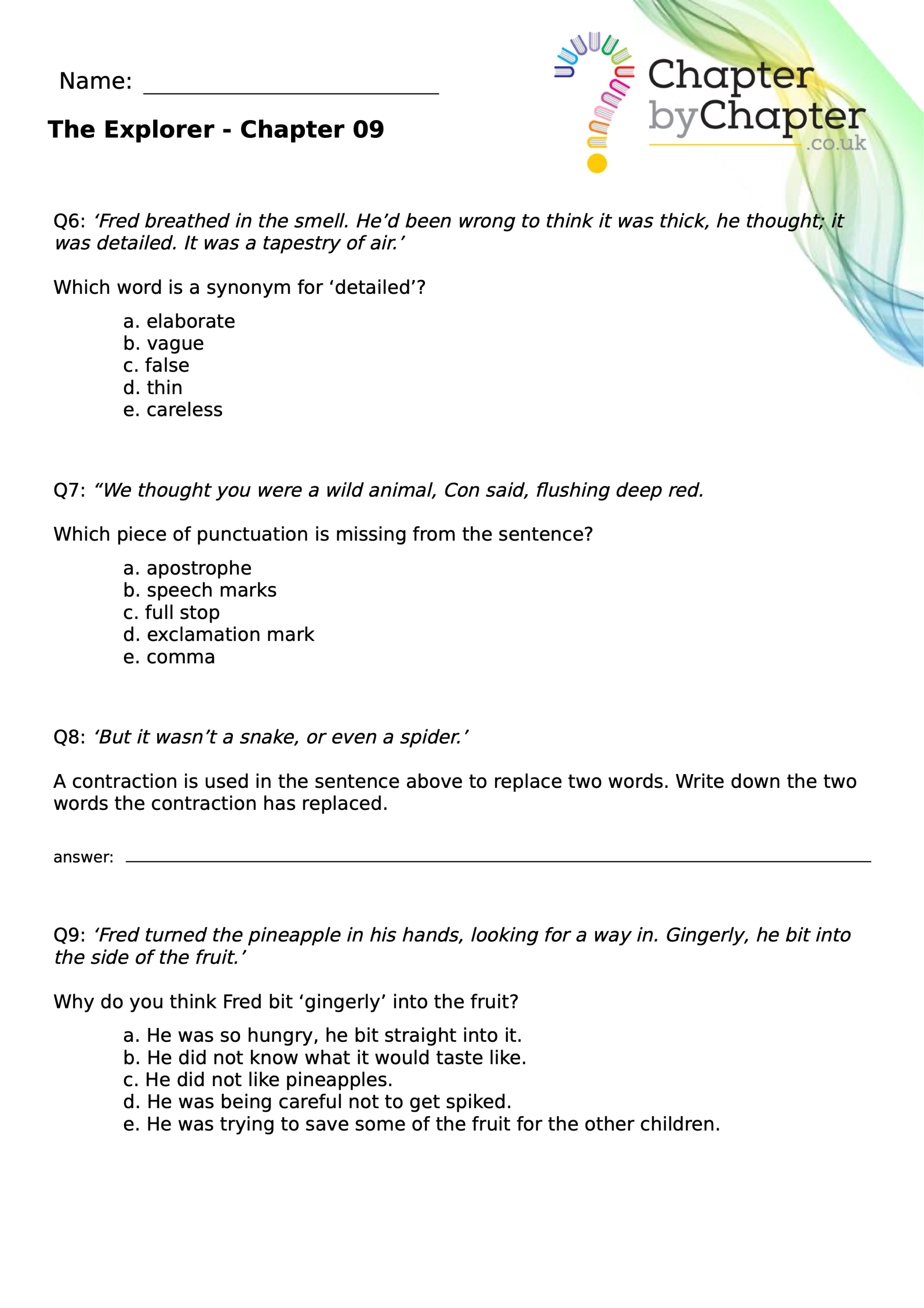 Print our question set aimed at Year 5 and Year 6 linked to Chapter 9 of The Explorer.